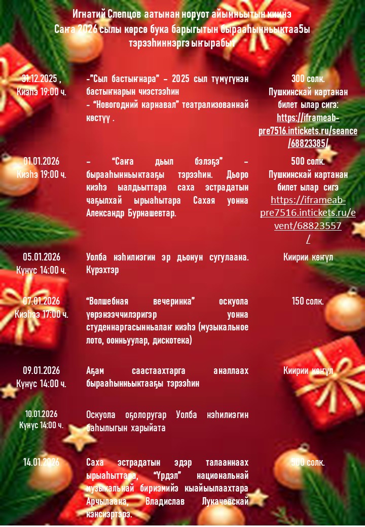 Саҥа 2026 сылы көрсө бука барыгытын бырааhынньыктаа5ы тэрээhиннэргэ ыҥырабыт.